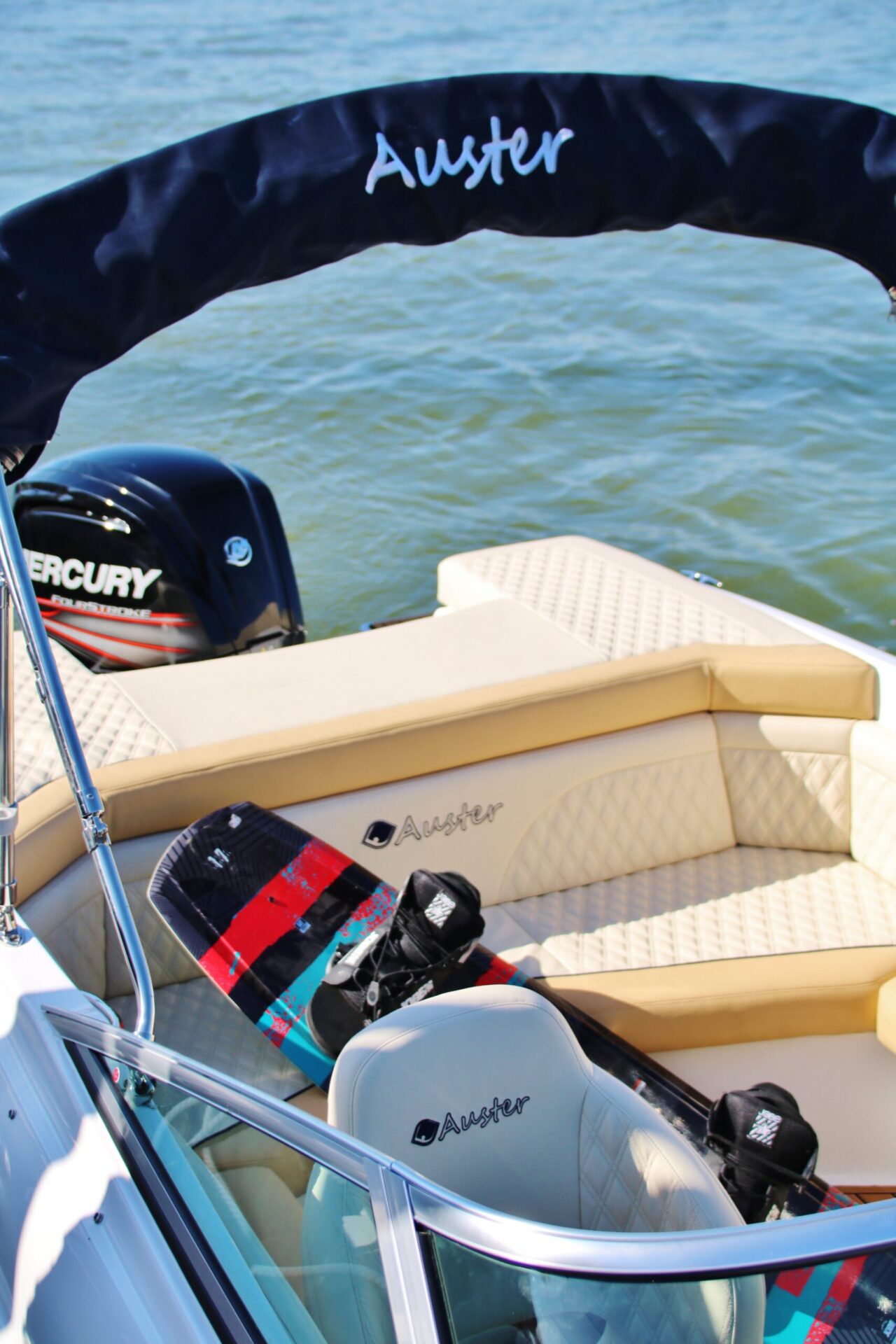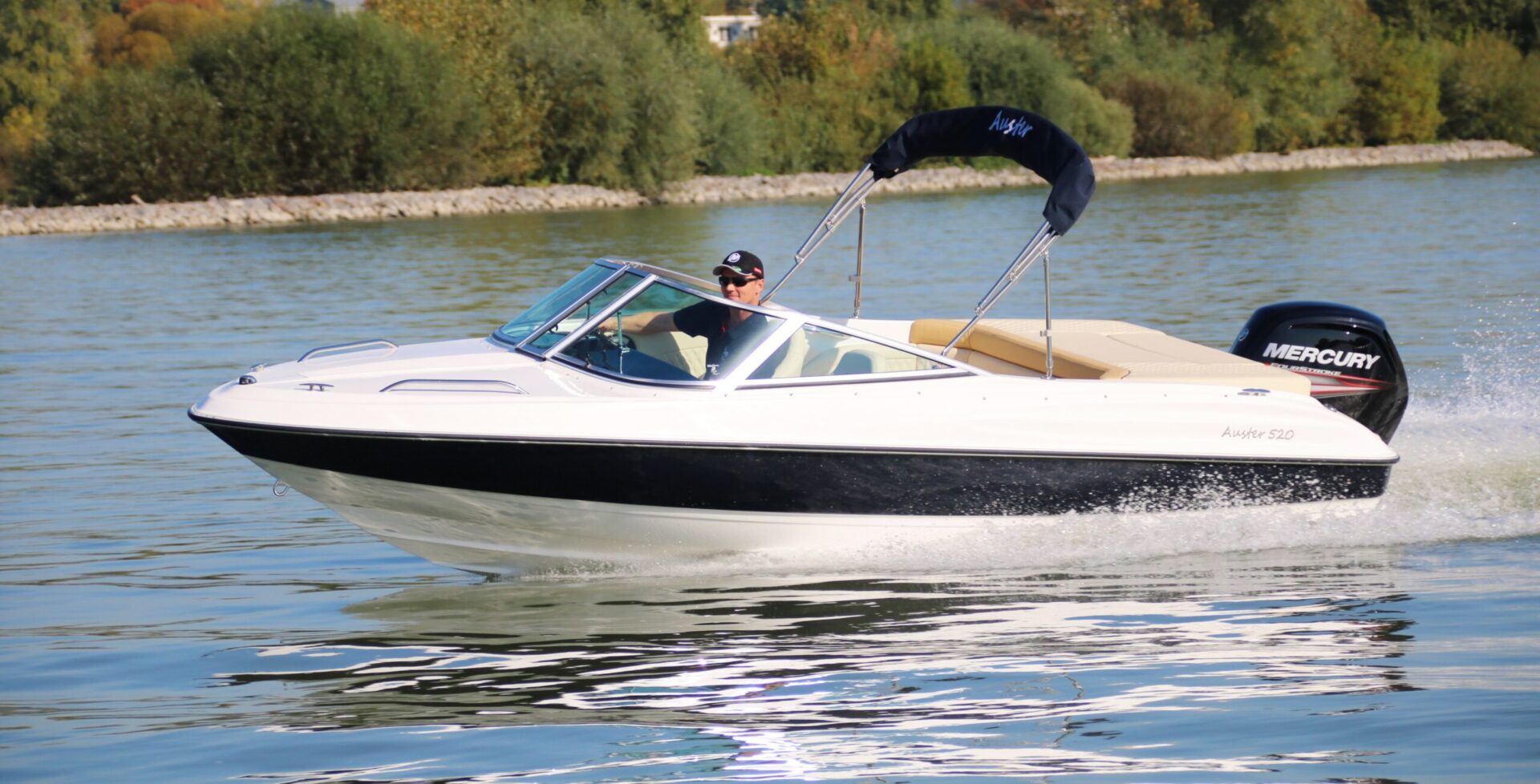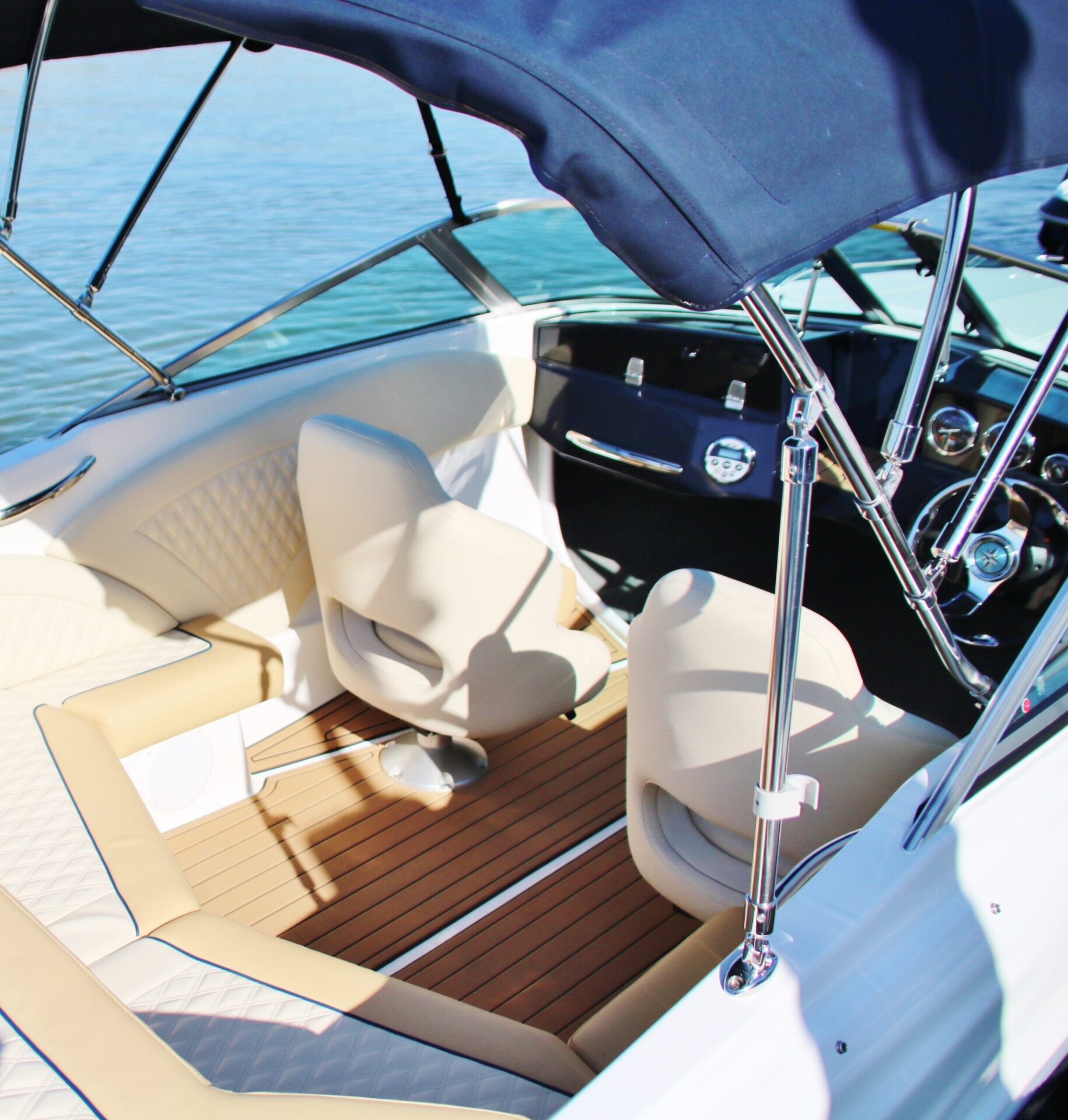 Unser Spaßboot der Auster Serie besticht durch viel Stauraum, hochwertige Polster und eine große Sonnenliege.