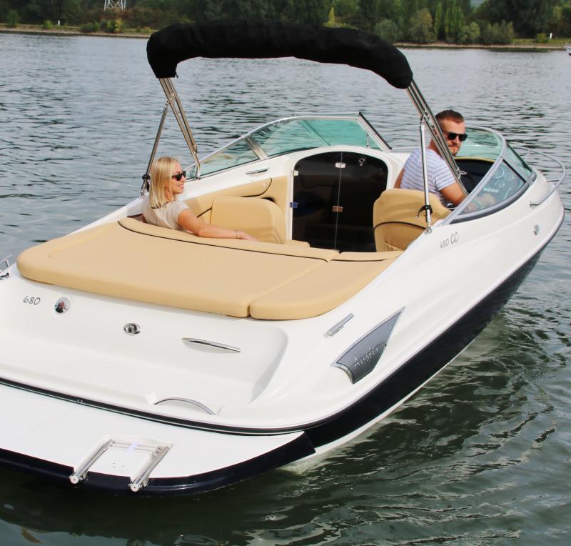 Der Daycruiser mit Schlupfkabine (2 Schlafplätze), große Sonnenliege, optionale Bugsonnenliege und Chemie WC. Das perfekte Einstiegsboot!