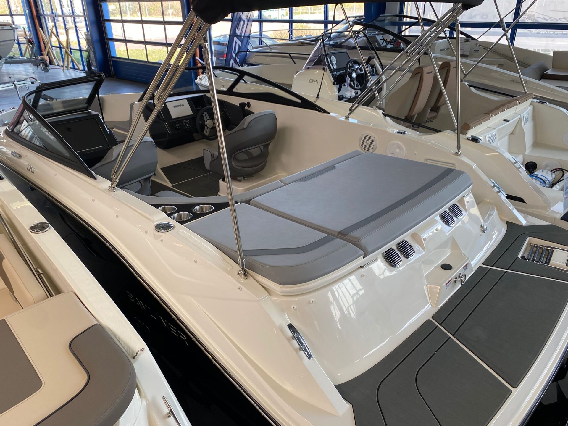 Gerne empfangen wir Sie in unserer riesigen Ausstellungshalle in Budenheim bei Mainz am Rhein mit über 5000 m² und einer Vielzahl an verschiedenen Bootsmodellen und eigenem Shop.