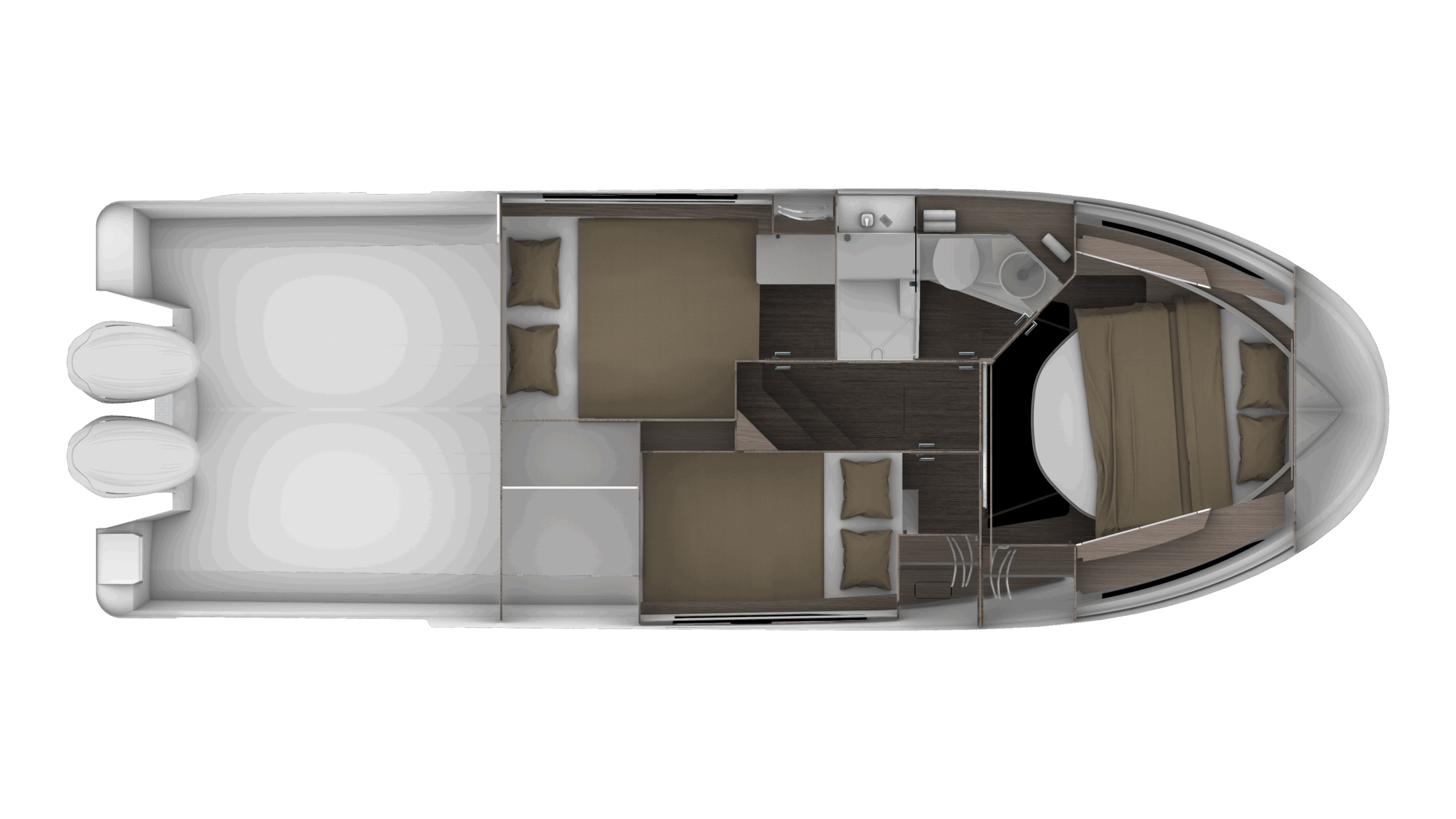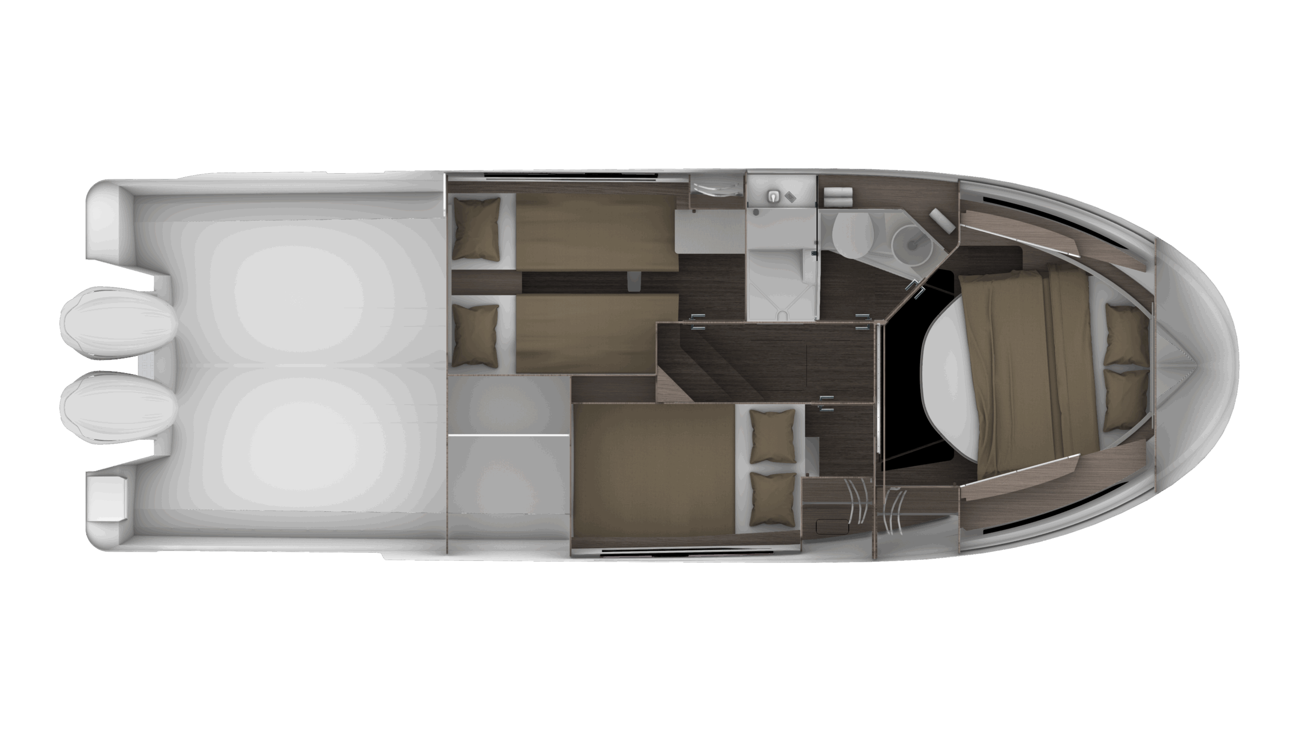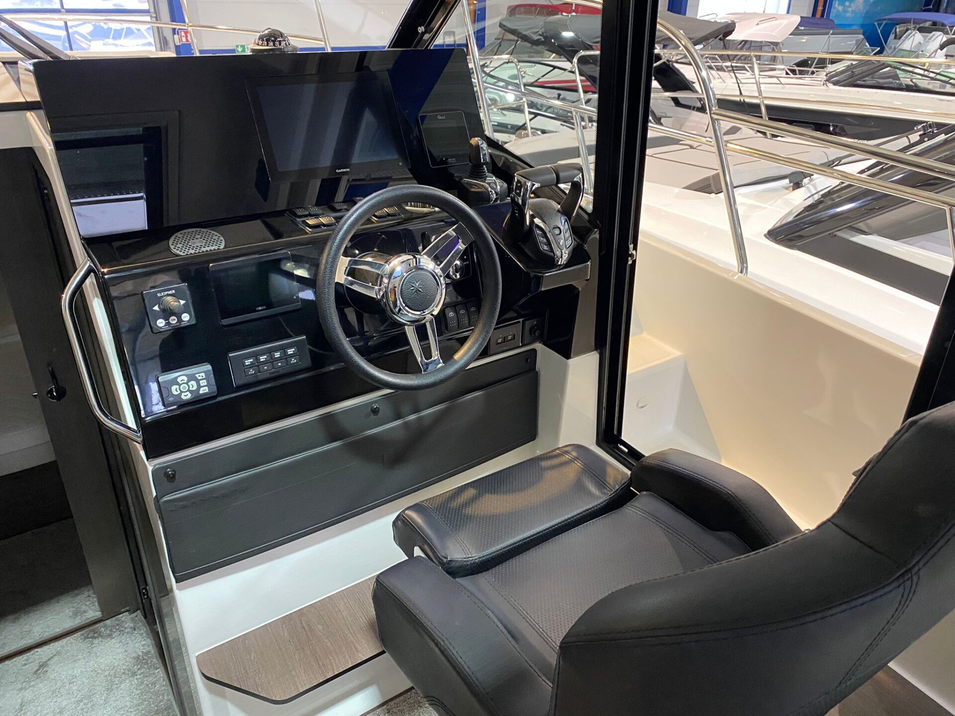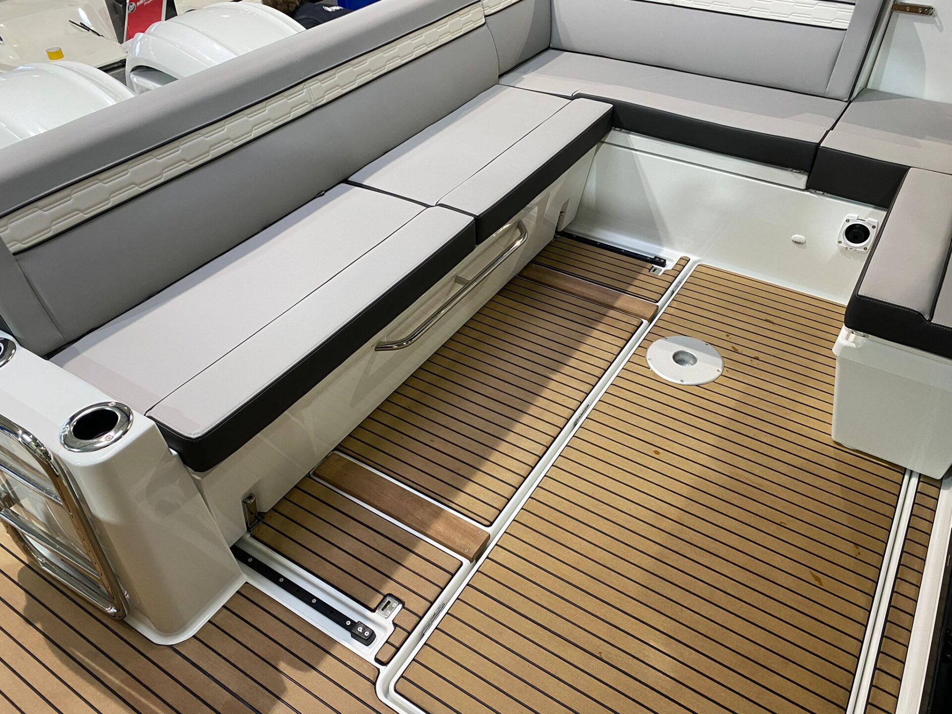- Trim Level Premiere Paket: Elektrische Ankerwinde, Cockpit Dusche, Ambiance LED indirekte Beleuchtung, LED Cockpitbeleuchtung, Elektrische Trimmklappen Lenco, 230 V Warmwasserbolier, Innengardinen, 2 Cockpitstrahler, Angelrutenhalter