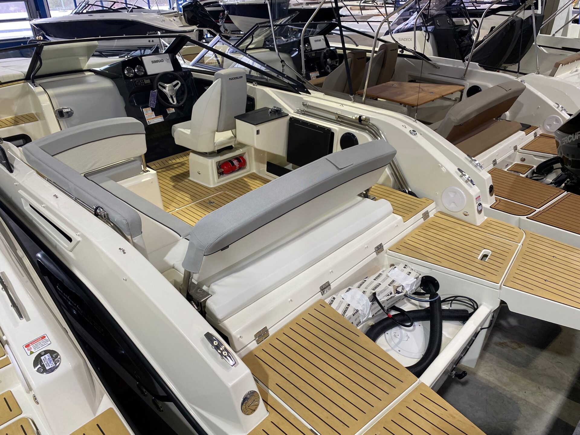 - SMART Edition mit Legacy-Grau Rumpffarbe, weißen & hellgrauen Deluxe-Line Polstern mit Premium Nähten und Flexiteek Bodenbelag: Premium-Grau-Weiß-Stoff mit aufwendigen Nähten, Rumpffarbe (Legacy-Grau), Flexiteek Bodenbelag, LED Innenbeleuchtung, Echter Teak-Cockpit-Tisch, Wasserskimast, Kühlschrank, Cockpit-Dusche, Fusion Stereo mit 2 Lautsprechern, Simrad GPS/Chartplotter Cruise 9 mit HDI Transducer, Cockpit-Sonnenlounge, Mooring Kit