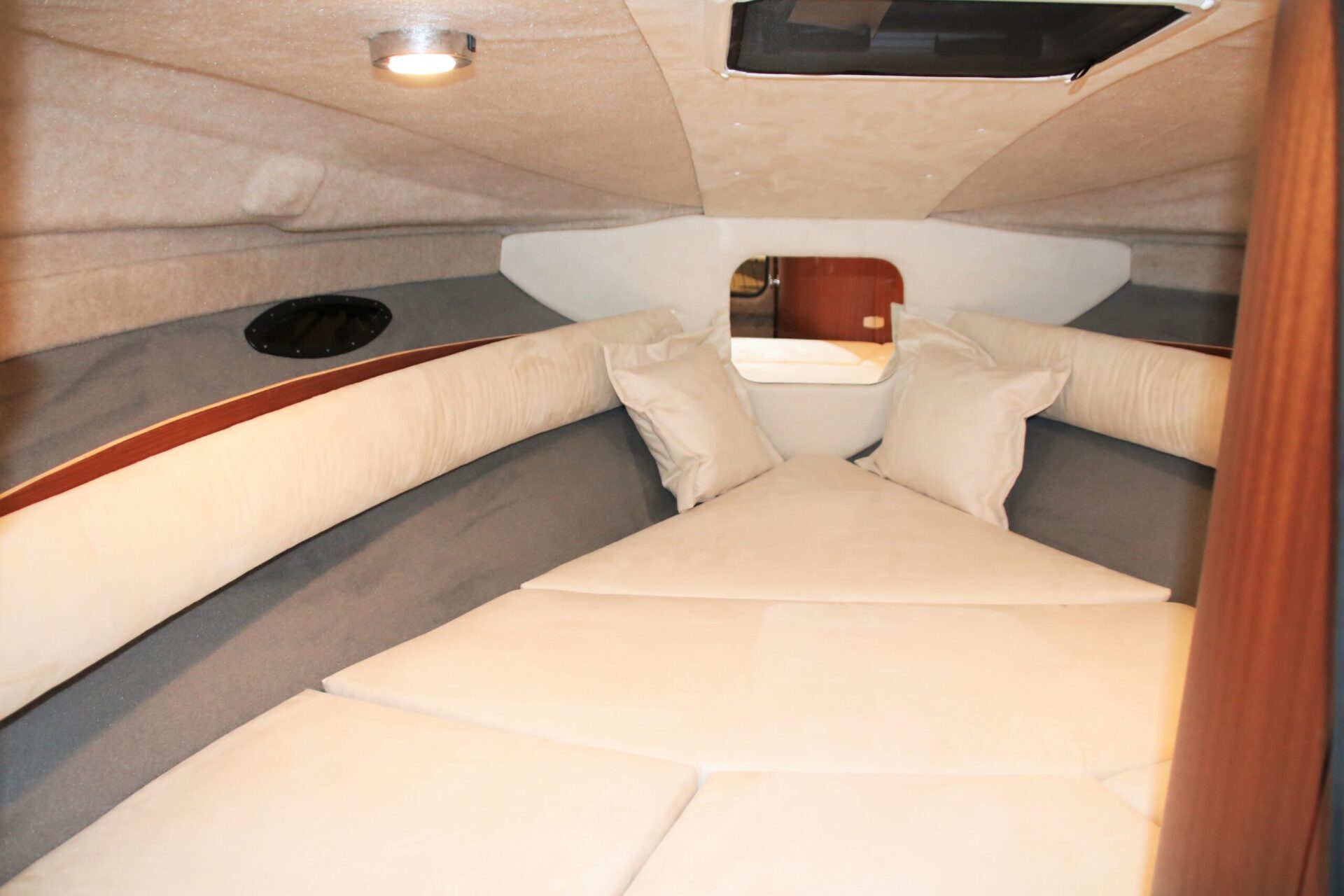 - Eingeformte Trittstufen zum Vordeck mit geteilter Windschutzscheibe