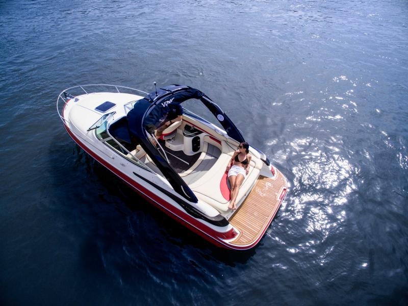 Der trailerbare Weekender mit separatem Toilettenraum, großer Sonnenliege und Wetbar im Cockpitbereich. 100% Made in Germany!