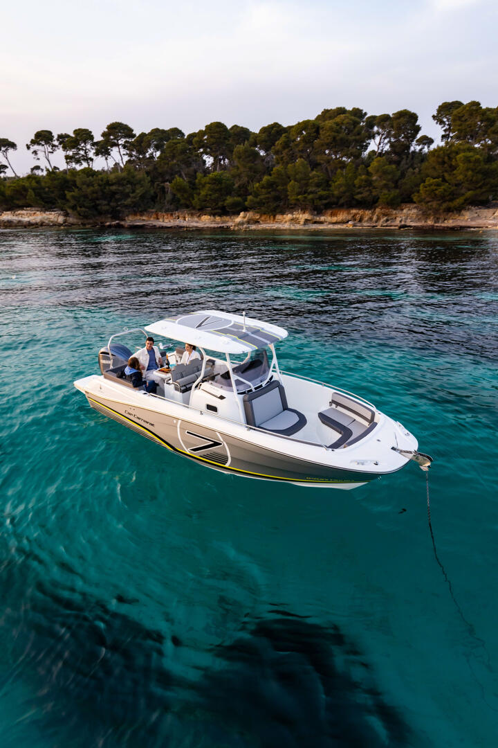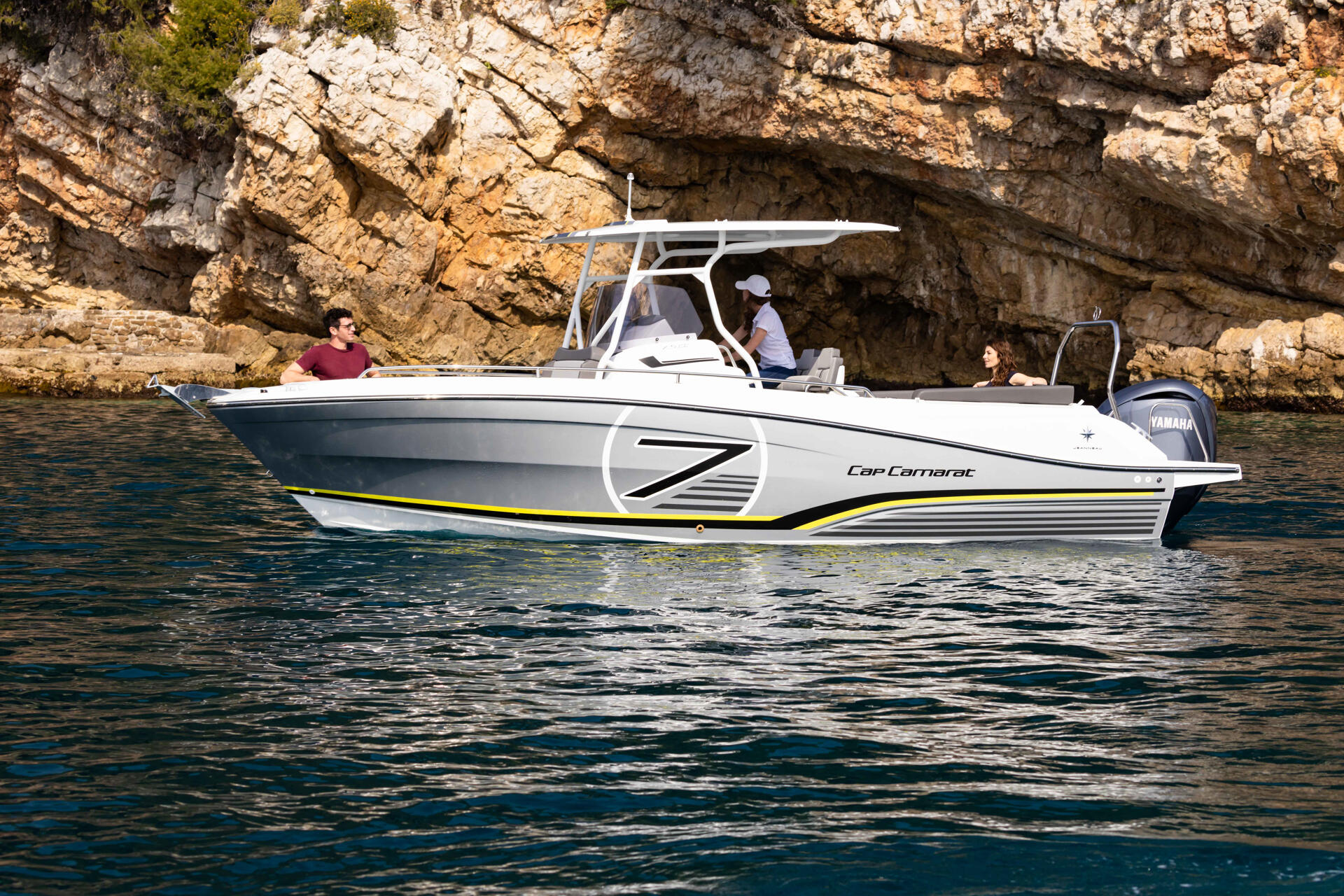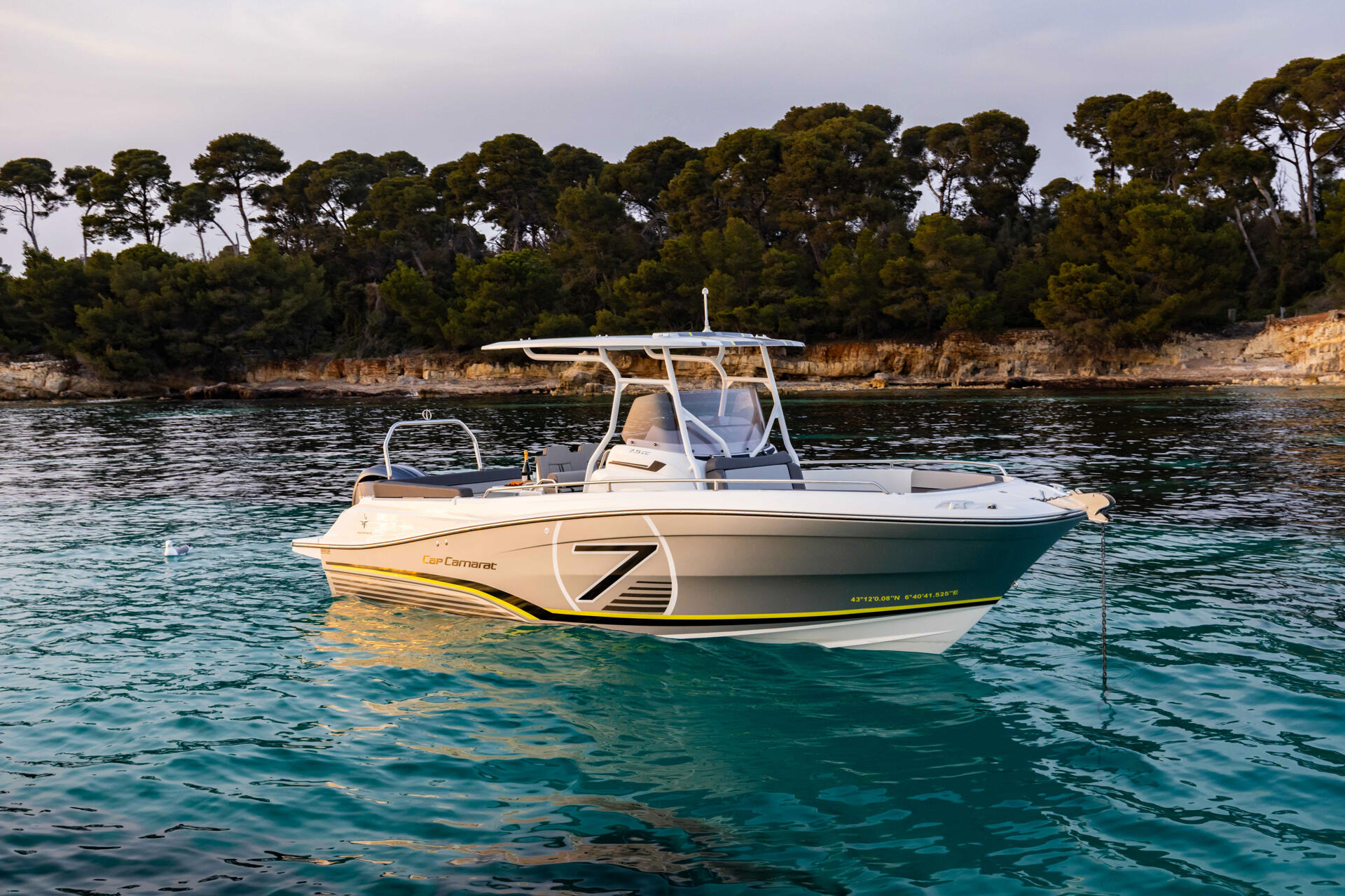 Die Jeanneau Cap Camarat 7.5 CC Serie 3 ist ein außergewöhnliches Boot, das speziell für Wassersport und Ausflüge auf dem Wasser konzipiert wurde. Es verfügt über eine große Liegefläche im Bug, die perfekt zum Sonnenbaden und Entspannen geeignet ist. Die Mittelkonsole des Bootes bietet nicht nur viel Stauraum, sondern auch eine komfortable Liegefläche und ein Marine-WC für zusätzlichen Komfort an Bord. Sie haben auch die Möglichkeit, die Jeanneau Cap Camarat 7.5 CC Serie 3 mit Motoren von Yamaha, Suzuki und Mercury zu motorisieren, was Ihnen eine breite Auswahl an Antriebsmöglichkeiten bietet. Darüber hinaus besteht die Möglichkeit, das Boot mit einem T-Top auszustatten, um zusätzlichen Schutz vor Sonne und Wetter zu bieten. Die Jeanneau Cap Camarat 7.5 CC Serie 3 verfügt auch über einen Küchenblock mit Waschbecken und Kühlschrank, sodass Sie Ihre Mahlzeiten und Getränke bequem an Bord zubereiten können. Die klappbaren Sitzbänke bieten zusätzlichen Komfort und Flexibilität während der Fahrt. Die Jeanneau Cap Camarat 7.5 CC Serie 3 ist ein vielseitiges Boot, das sowohl für Wassersportaktivitäten als auch für entspannte Ausflüge auf dem Wasser geeignet ist.